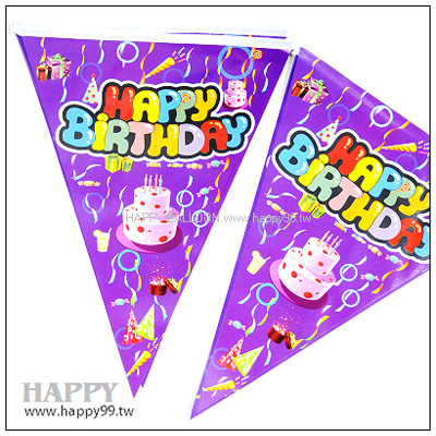 生日快樂三角旗 紙質雙面印刷 長度約250CM 1條10張旗面